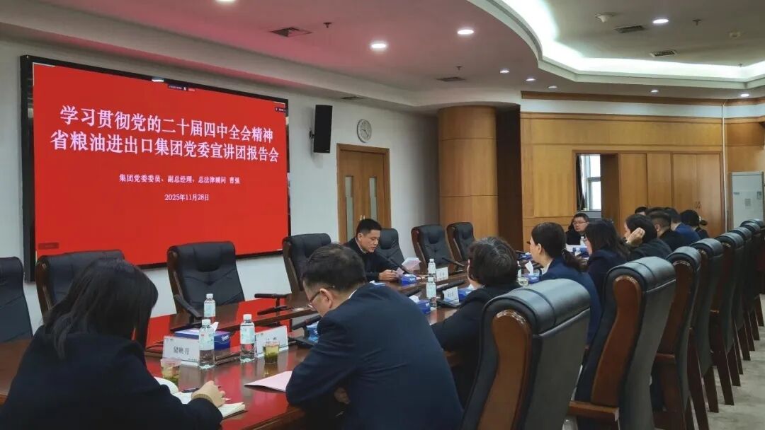 為持續(xù)推進(jìn)黨的二十屆四中全會(huì)精神學(xué)習(xí)宣傳貫徹工作走深走實(shí),按照湖北農(nóng)發(fā)集團(tuán)黨委統(tǒng)一部署,省糧油進(jìn)出口集團(tuán)扎實(shí)推進(jìn)學(xué)習(xí)貫徹全會(huì)精神,深刻領(lǐng)悟全會(huì)的重大意義、核心要義與實(shí)踐要求,在全集團(tuán)范圍內(nèi)形成了學(xué)精神、悟思想、擔(dān)使命、促發(fā)展的濃厚氛圍。