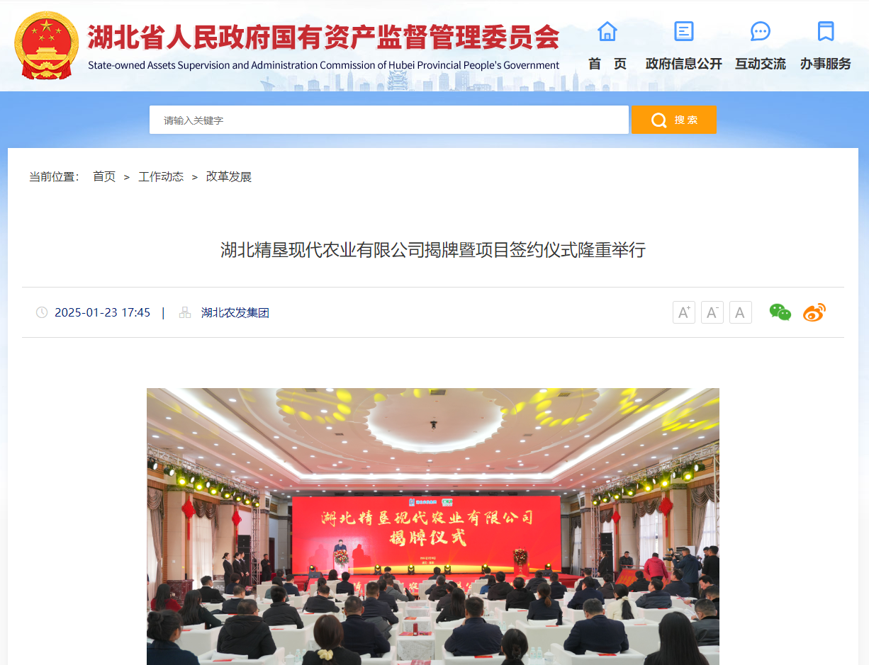 湖北省國資委:湖北精墾現代農業有限公司揭牌暨項目簽約儀式隆重舉行